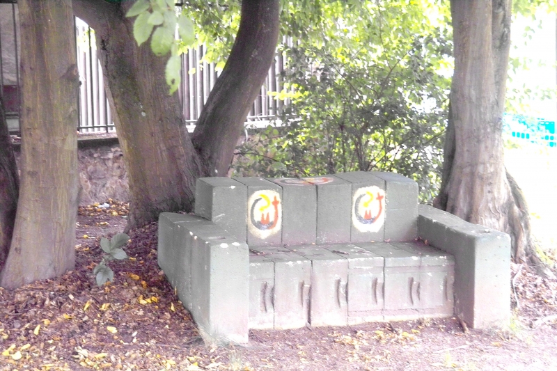 Die Bank unter dem Baum wurde während der Begegnung mit koreanischen, kolumbianischen und polnischen Jugendlichen bei der Vorbereitung zum Weltjugendtag gebaut.